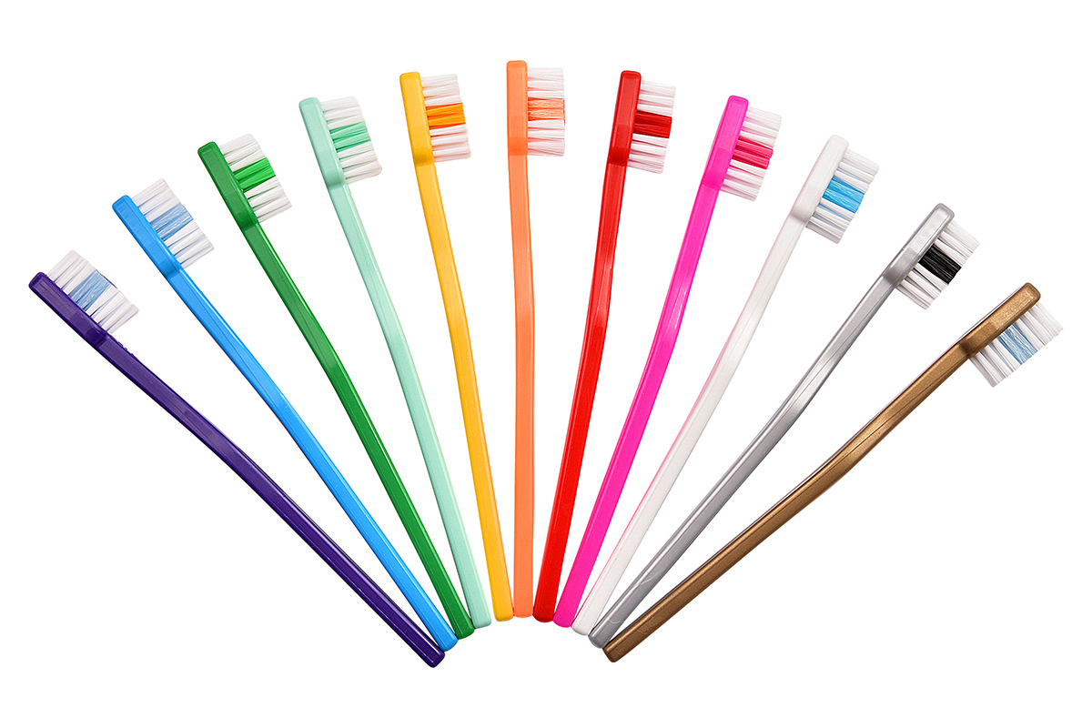 Toothbrush for nursery and primary school aged children with compact, diamond shaped head and straight handle.