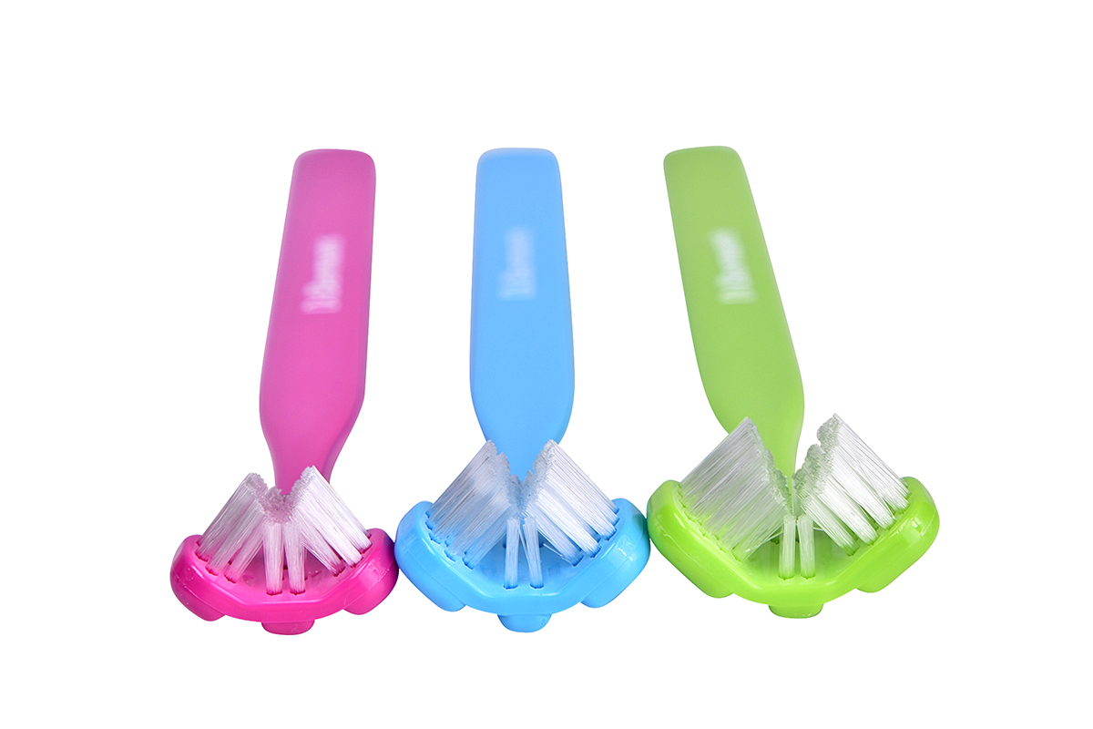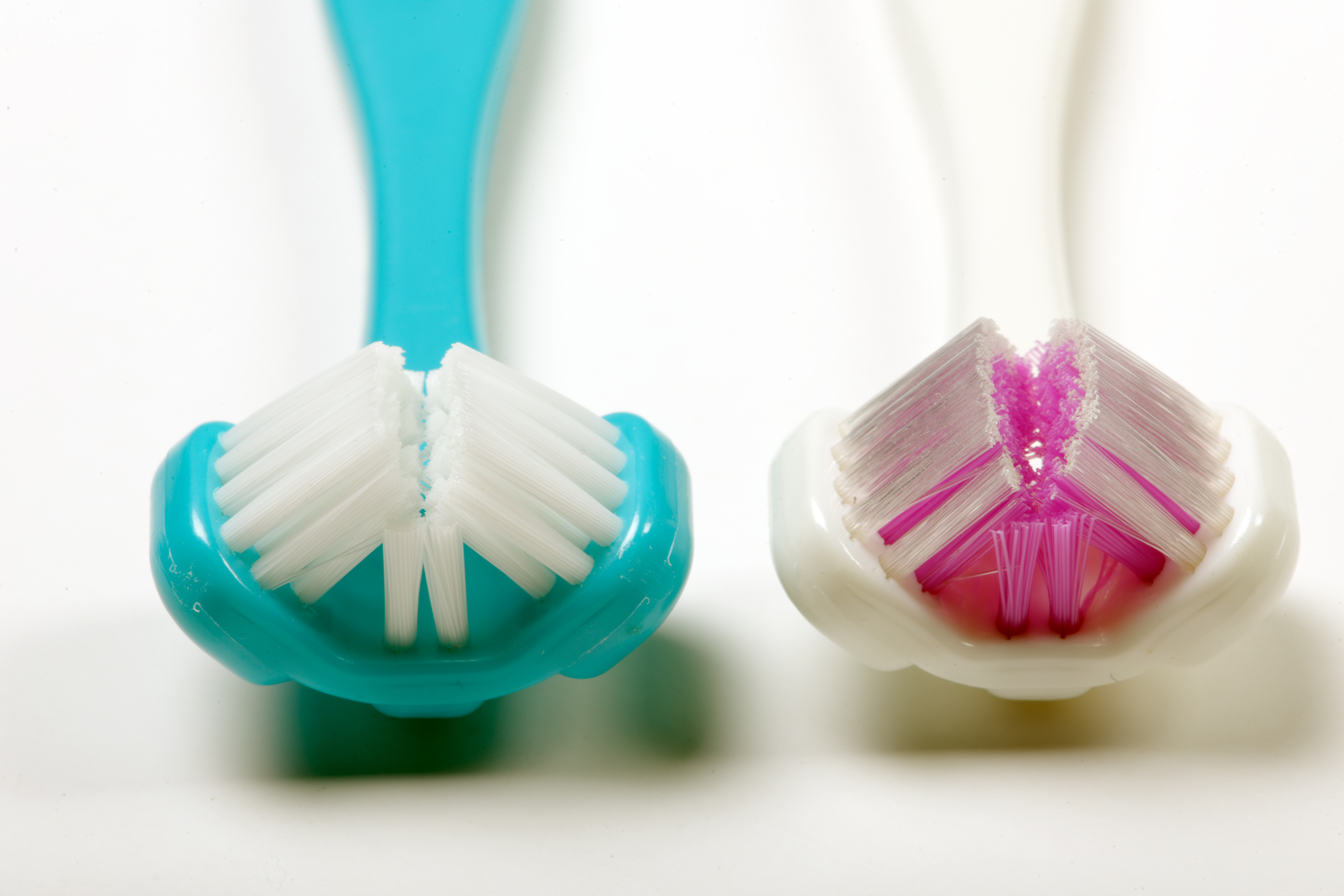 Toothbrush with three heads which surround the tooth cleaning on all sides. Available in Infant/Child, Compact Junior, Adult/Regular sizes