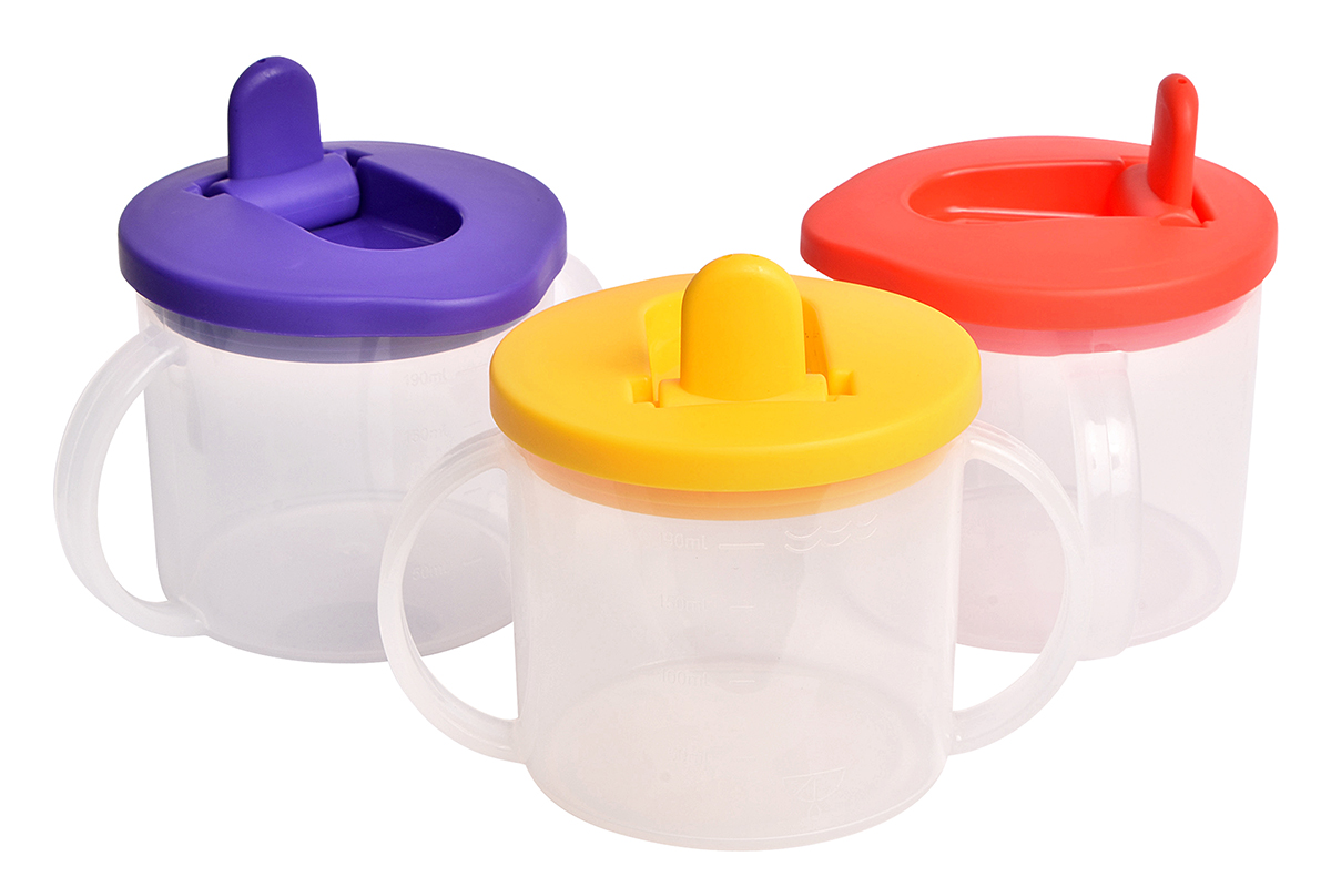 FlipTop Cup: free flow with closeable spout. Available in three colours