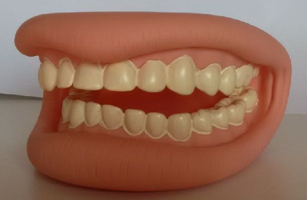 Larger than life Mouth Model to demonstrate how to brush teeth.