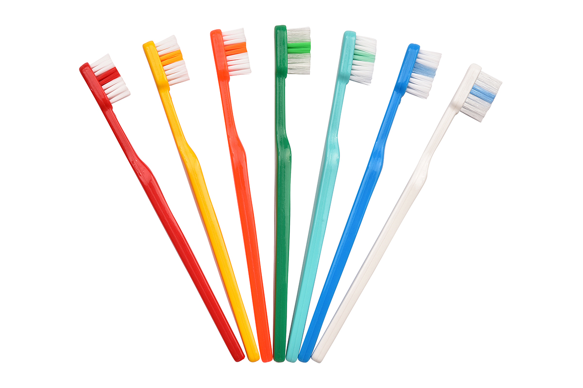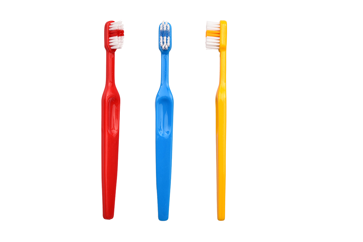 Toothbrush for nursery and primary school aged children with compact, narrow head and straight handle