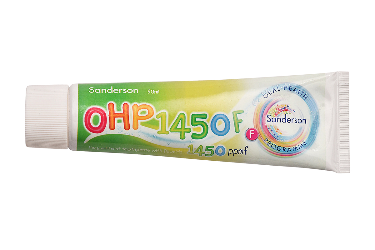 A very mild mint toothpaste with 1450 ppm Fluoride. 50ml tube