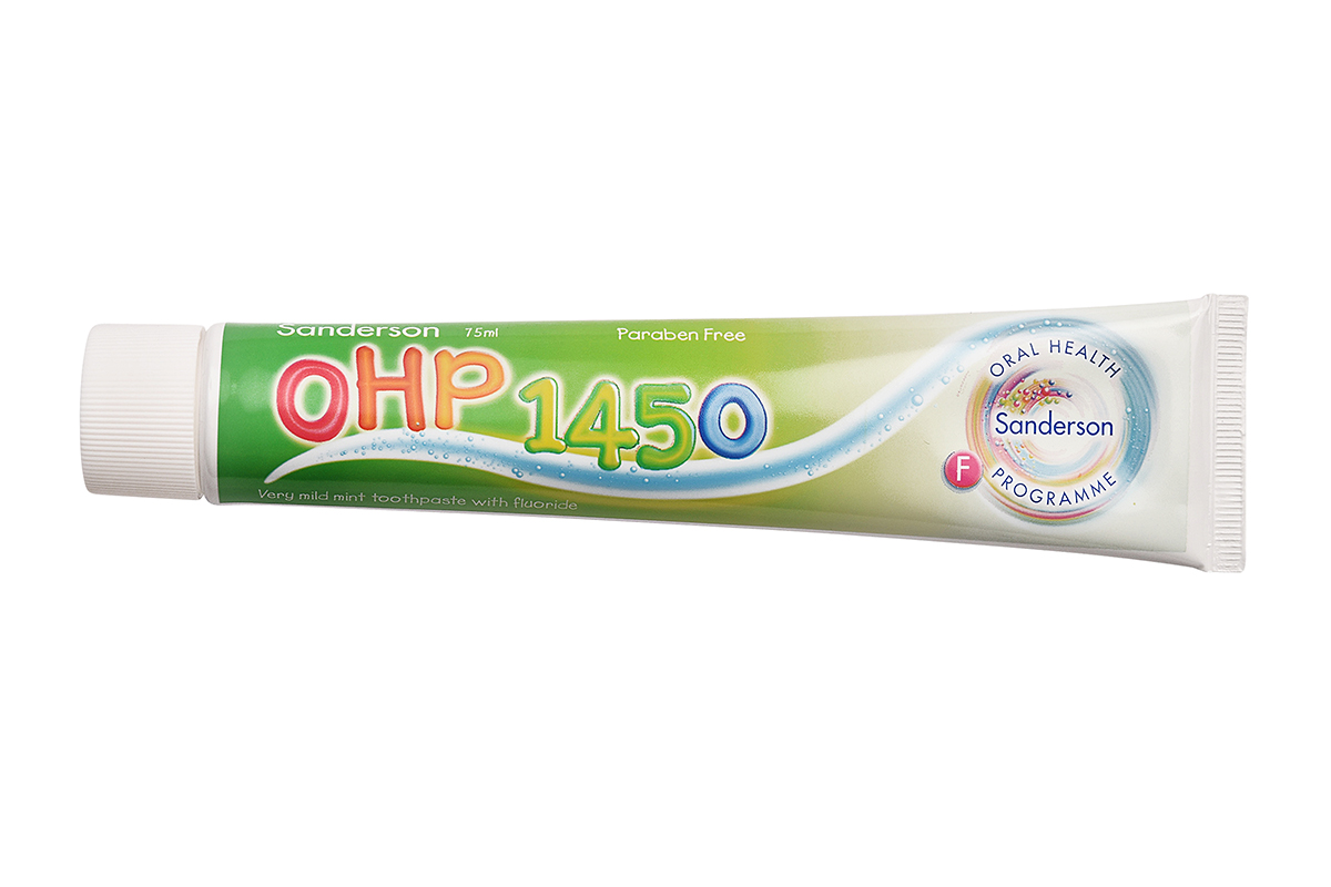 A very mild mint toothpaste with 1450 ppm Fluoride. 75ml tube