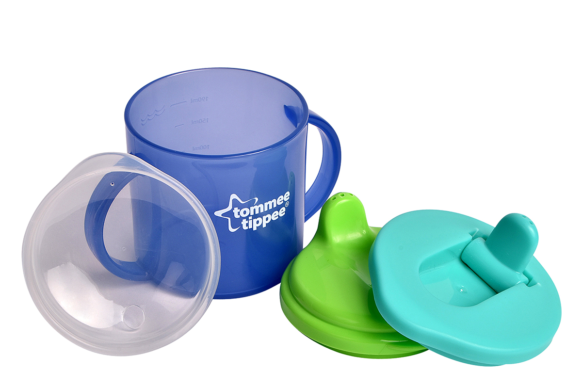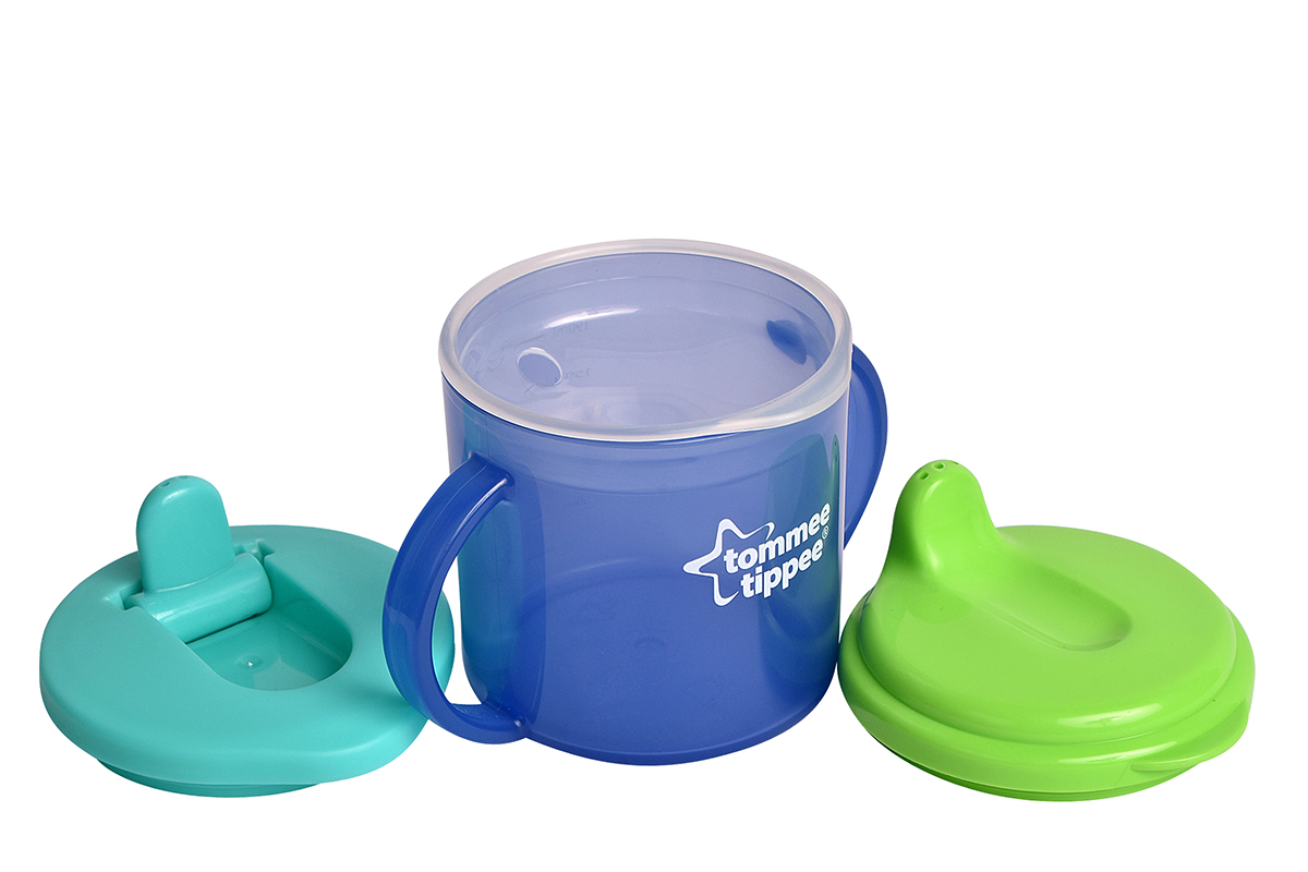 Free flow cup with three lids: fixed spout, folding spout and sipper lid