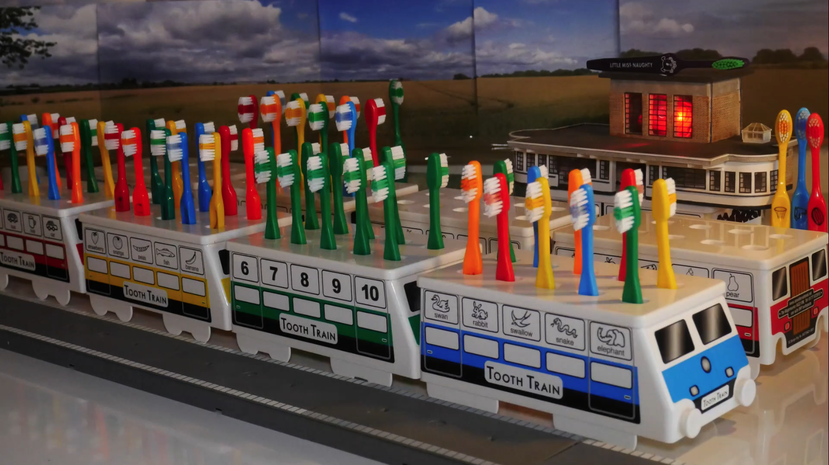 - Toothbrush Trains can be linked together by placing the back of one Train onto the buffers of the next