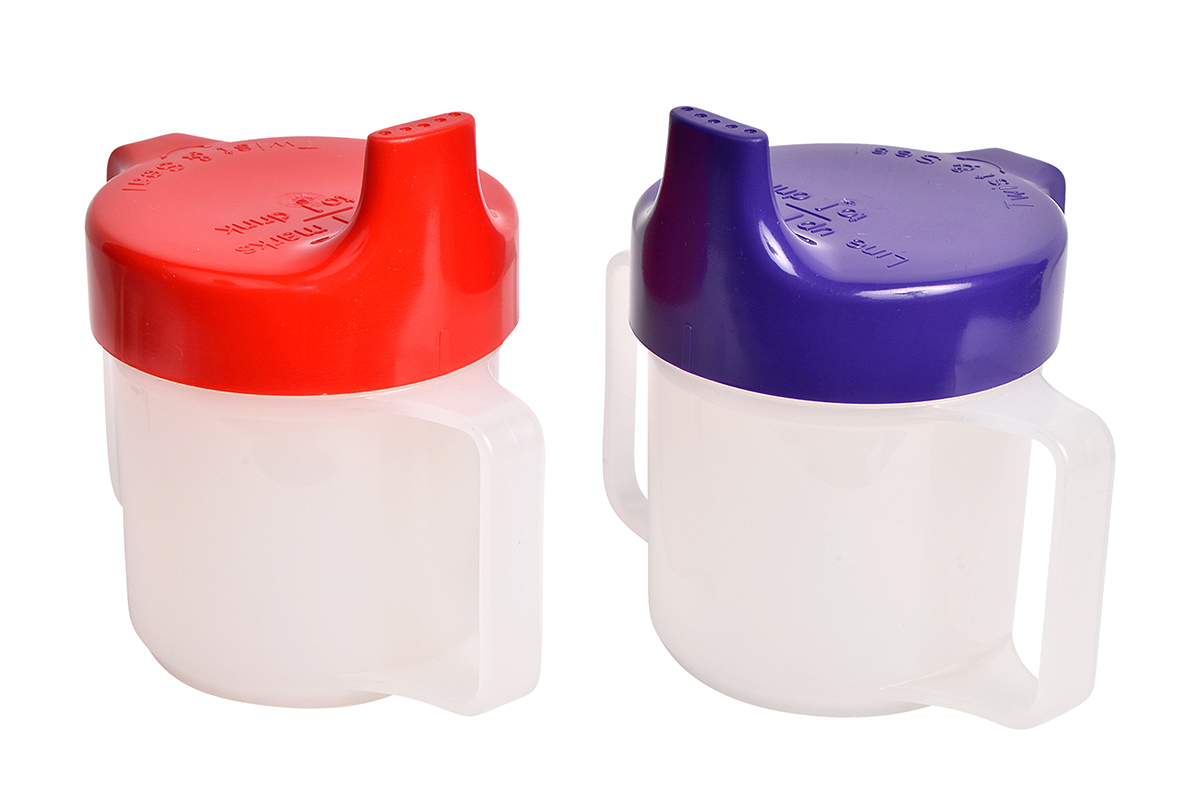 Free flow cup, which can be sealed and opened by twisting the lid. Available in three colours. Often used in early years welcome dental packs.